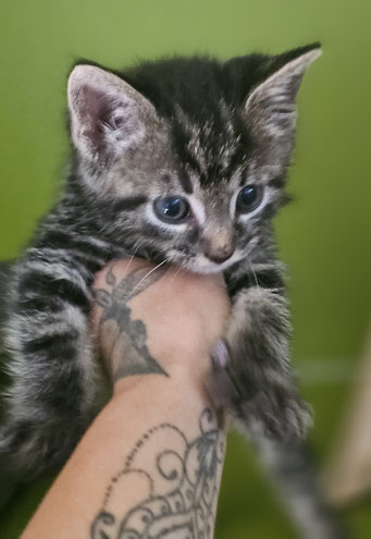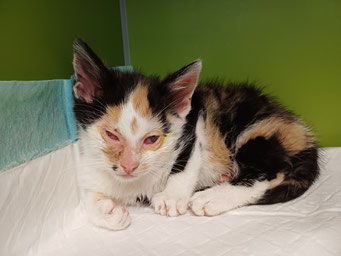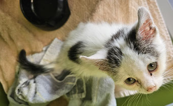 Diese ca. 7 Wochen alte Kätzchen (weiblich, ohne Kennzeichnung) wurde heute zwischen Schechingen und Hohenstadt aufgefunden und befindet sich derzeit stationär in unserer Praxis.