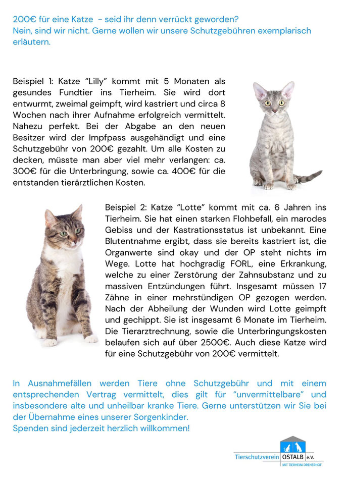Wir benötigen DRINGEND Spenden für die Streunerkatzen im Ostalbkreis